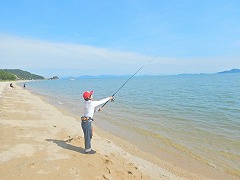 今週は今治周辺の釣り場を探り、秋のキス釣りをご紹介します。3人の釣り人が、軽オモリの短竿でチョイ投げ釣りです。大西町鴨池海岸や桜井海岸、休暇村瀬戸内東予の浜など何カ所ものポイントを探りました。エサは青虫や日本ゴカイを使います。針の大きさ、いっぱいになるくらいに、小さく切って針に刺します。波打ち際から20〜30m沖くらいの近場を狙いました。ハゼや小フグなどのエサトリに邪魔されながらも、中・小型のキスを次々にゲット。投げ釣りを楽しみました。今治一帯の釣り場で、10月にもキスは有望です。