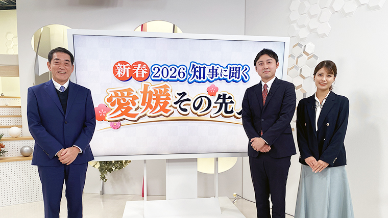 『新春2026知事に聞く〜愛媛その先へ〜』。中村知事が目指す地域経済の活性化や人口減少対策、防災・減災対策にどのように取り組んでいくのか。4期目の任期ラストイヤーとなる2026年の始まりに、地域課題の解決に向けた抱負やビジョンを聞きます。