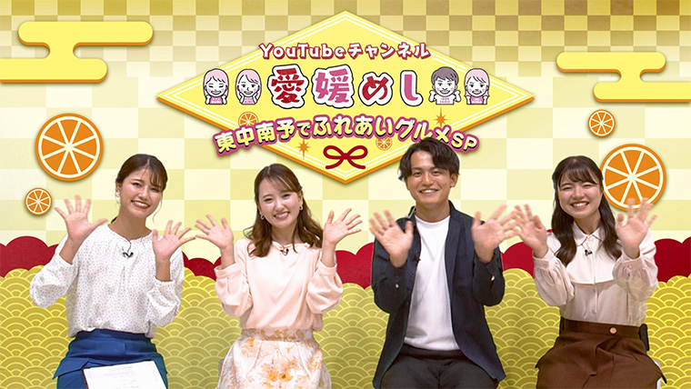 テレビ愛媛のアナウンサーが愛媛のグルメを紹介するYouTubeチャンネル「愛媛めし」。 今回は新春番組SPとして地上波放送!テレビ愛媛のアナウンサーたちが愛媛県内・東中南予のご当地グルメを紹介しながら現地でチャンネル登録を呼びかける!一番多く登録者を増やしたアナにはご褒美グルメも!?