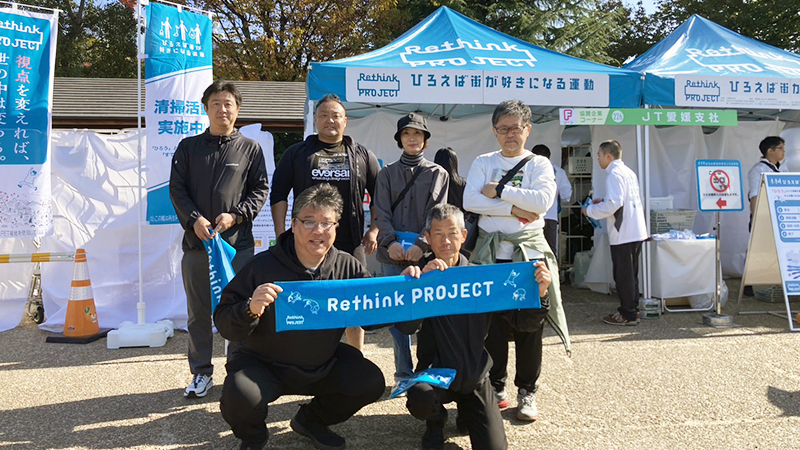 JT「ひろえば街が好きになる運動」スタッフと一緒に「えひめ・まつやま産業まつりすごいもの博2024」会場(城山公園)の清掃を行いました。