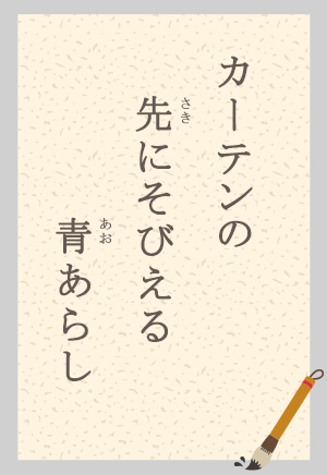 カーテンがひらりひらりとめくれる向こうに、青葉を渡る強い風が。「そびえる」という迫力が、夏の風の勢いを伝えます。
