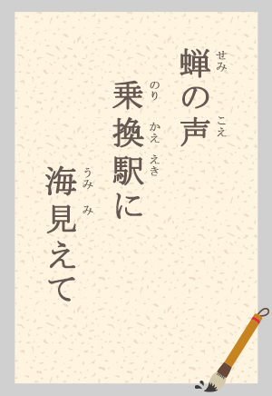 旅の途中、乗り換えるために電車を降りると、わっと蝉の声が聞こえ、駅から海が見えました。夏の思い出のあざやかな一場面です。