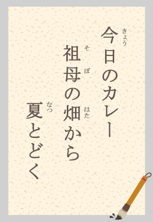 ナス、たまねぎ、トマト。畑から届いた夏野菜を使って、今日のカレーができました。おばあちゃん、おいしいよ。いつもありがとう。