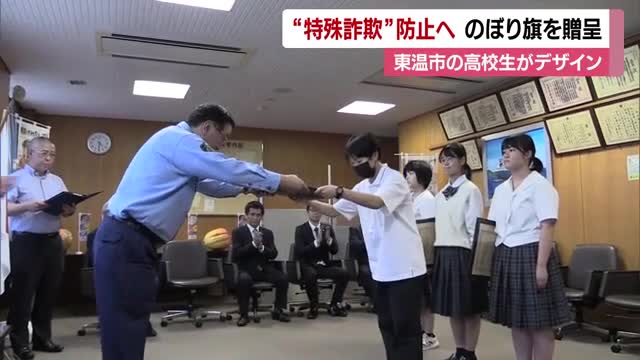 マドンナや砥部焼などと特殊詐欺防止PR 東温高美術部がデザインののぼり旗を警察に贈呈【愛媛】