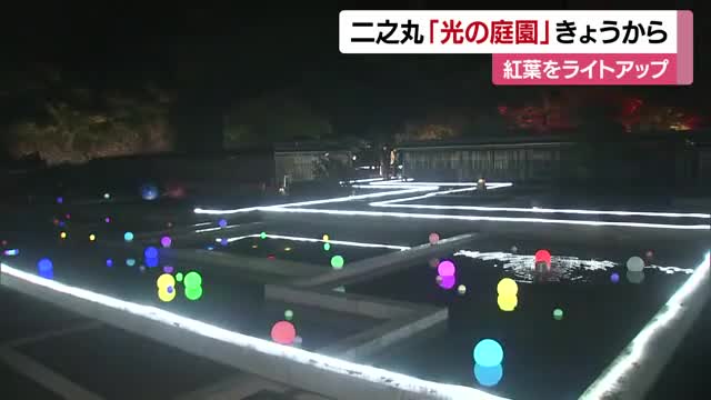ロマンチックな夜を演出 松山城・二之丸史跡庭園で「光の庭園」紅葉や水辺をライトアップ【愛媛】