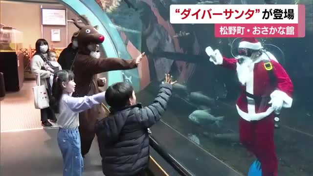 大水槽の中から「ダイバーサンタ」松野町の水族館「おさかな館」に登場 クリスマスムード盛り上げ【愛媛】