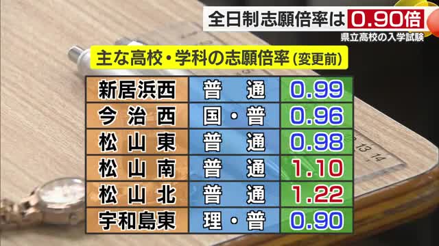 愛媛の県立高校入試 全日制の志願変更前の平均倍率0.90倍 最高は松山工・情報電子1.73倍【愛媛】